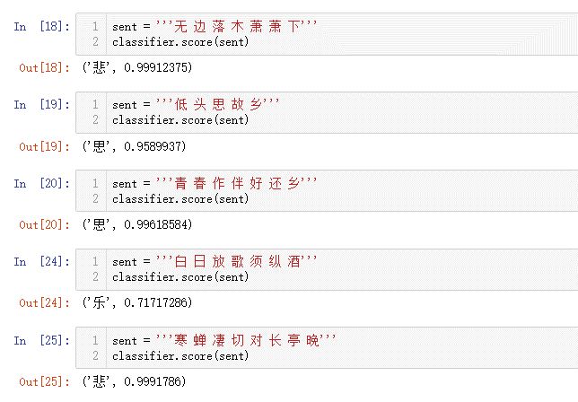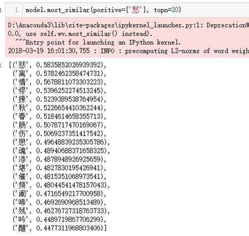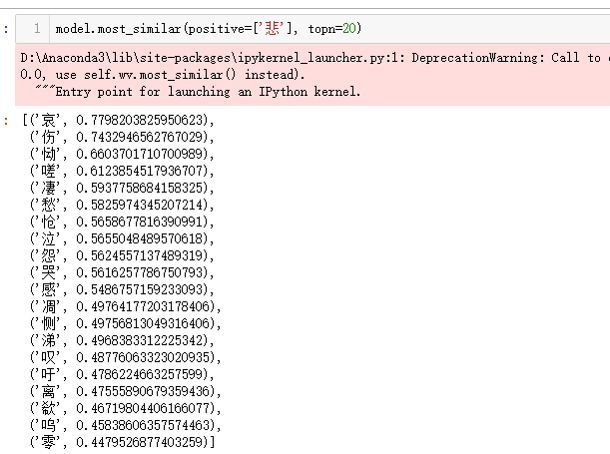 注意,在这里得到的情绪相关字,笔者将收集整理它们,制成情绪词典,用于后面的诗词情绪分类。